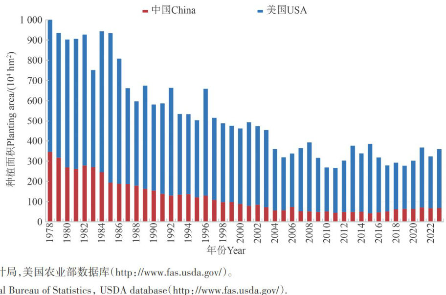 摘要:提升竞争力是我国高梁产业实现突破的必要条件。深入分析中美高梁生产、投入、研发等方面的差异有助于比较两国产业发展的特点及优势,借鉴国际先进经验,优化自身生产技术和管理模式。分析发现,中国高粱单产水平突破 4500kg?hm-2 ,但生产成本高企,劳动力成本和机械设备投入占比高,存在生产布局分散、土地集约度低、机械化水平不足,研发投入低等核心问题。因此,提出如下建议:一是优化空间布局,划定核心产区,推广智能农机共享平台提升机械化率;二是设立重大专项,着力突破基因编辑、数字决策系统等"卡脖子"技术;三是完善市场与政策支撑体系。研究结果旨在为提升中国高粱产业竞争力提供参考,推动高粱产业的可持续发展与转型升级。