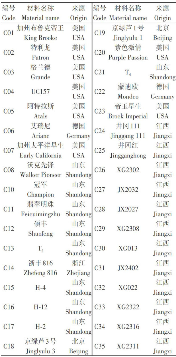 摘要:为综合评价不同芦笋品种(系)的耐高温性和筛选评价指标,以35℃作为高温胁迫温度,采用34份芦笋品种(系)为材料进行发芽试验。通过考察萌发期不同芦笋品种(系)种子发芽势、发芽率、发芽指数、苗鲜重、胚根长、胚芽长等相关性状,利用主成分分析、隶属函数分析、聚类分析和逐步回归分析等方法进行综合评价。结果表明,34份芦笋品种(系)可被系统聚类分析分为4个级别:I级为耐高温型,包含5个品种(系);Ⅱ级为较耐高温型,包含12个品种(系);Ⅲ级为中间型,包含5个品种(系);IV级为不耐高温型,包含12个品种(系)。逐步回归分析表明,相对发芽势、相对胚根长和相对发芽率3个指标可用于芦笋萌发期耐高温鉴定的正相关指标,指标值越大,耐高温性越强,筛选出C28为耐高温性最强品系,可作为芦笋耐高温育种和耐高温性机制研究的重要资源。
