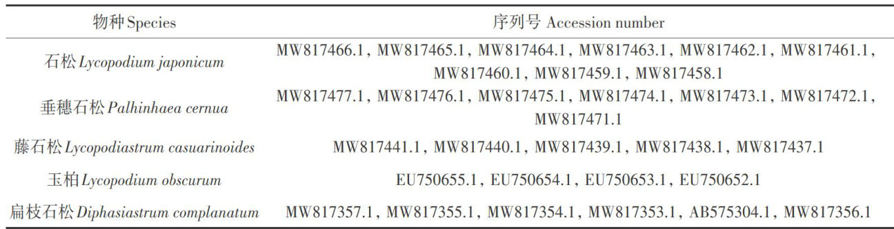 摘要:为探究石松的叶绿体基因组密码子使用偏好性及其影响因素,并为石松的快速精准鉴别提供更科学的分子鉴别方法,通过GenBank获取5种石松科植物的31条psbA-trmH序列,利用ClustalW进行序列对比,用MEGA11计算种内和种间K2P(kimura2-parameter)遗传距离,并构建系统发育树;同时利用mEMBOSS、CodonW和SPSS软件进行中性绘图分析、ENC-plot分析、PR2-plot分析、最优密码子的筛选和对应性分析。结果表明,5种植物各自的最大种内遗传距离小于彼此之间的最小种间遗传距离。系统发育树结果显示,各物种均可独立分支,具有良好的单系性。石松叶绿体基因组密码子第3位碱基的A/U含量显著高于G/C含量。同义密码子相对使用度(relative synonymous codonusage,RSCU) >1 的密码子多以A/U结尾。石松叶绿体基因组有9个最优密码子,且密码子偏好性受突变压力、自然选择等多种因素的共同影响。利用psbA-trmH序列能够有效区分5种石松科植物。以上研究结果为石松科植物及其药材的鉴定提供了分子生物学依据。