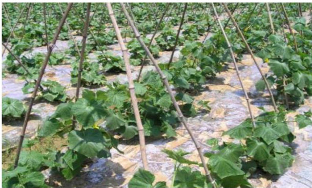 黄瓜是瓜类蔬菜中栽培面积最大的种类,其生产方式主要有春露地或早春露地地膜覆盖栽培(图1)、大棚春特早熟栽培、大棚春早熟栽培、小棚加地膜春早熟栽培、夏露地栽培、夏秋大棚栽培、大棚秋延后栽培等。益阳市赫山区科技专家服务团专家及益阳市农村科技特派员王迪轩团队,根据所服务的益阳市赫山区优享种植专业合作社等农业新型经营主体,开展有机黄瓜种植的技术探索和经验积累,总结出一套较为成熟的有机黄瓜早春露地栽培技术。