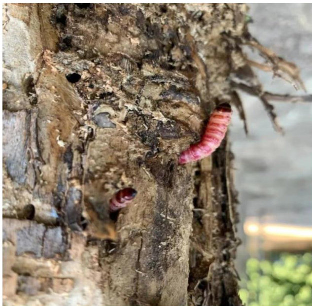 摘要:近年来,胶东地区无花果果园经常发现天牛危害,尤其是成龄树的枝干易遭受天牛幼虫蛀食危害,造成枝干枯死,严重时整株死亡,给无花果生产造成严重损失。经过观察,确定危害无花果枝干的天牛主要是黄星天牛,该天牛成虫于6月上中旬开始在无花果园出现,6月下旬至7月上中旬达到高峰,此期是田间防控天牛成虫的关键期。天牛幼虫危害可贯穿整个无花果生长期,可采用物理、化学等方法进行防控。