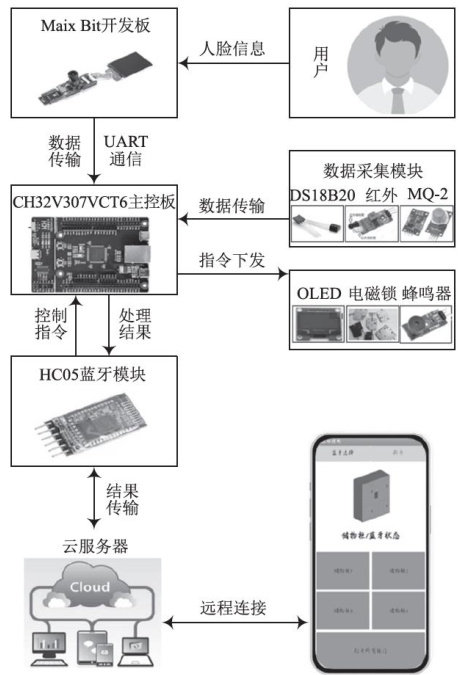 摘要:文中设计并制作了一种智能储物系统,实现储物柜的人脸识别、状态监测、危险警报及云端管理功能。人脸识别功能通过K210模块获取用户脸部特征参数,在Maix Bit芯片上利用YOLO算法进行人脸识别;红外传感器模块获取储物柜内物品存放状态,在沁恒CH32V307VCT6芯片上通过定时器实现空闲、占用、滞留的状态分类;通过DS18B20、MQ-2传感器模块获取储物柜内温度、烟雾参数。同时通过HC05蓝牙模块将状态结果和监测信息同步至服务器,管理人员通过手机端APP即可实现储物柜的在线监测。系统将储物柜的使用和管理数据化、智能化,可应用于超市、车站、游乐园等多种场景,具有较强的实用性,能有效为城市居民的生活提供便利,对推进公共设施智能化建设、物联网建设具有重要意义。