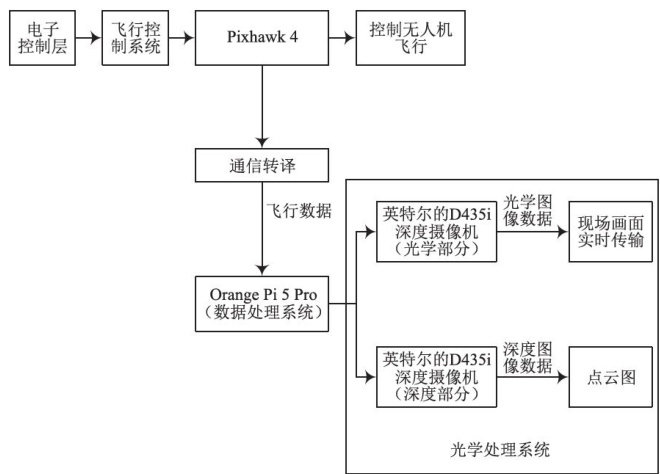摘要:针对森林火灾救援中物资投送效率低、危险性高的难题,文中提出一种基于多模态感知的无人机物资精准投送系统,结合高精度定位与自适应投放控制技术,实现了复杂火场环境下的应急救援。系统以Pixhawk 2.4.8飞控为核心,通过QGroundControl地面站预设三维航点路径,实现自主规划路径飞行。通过PX4Flow光流传感器和声呐传感器组成的多源模块与PID算法的结合,实现在火灾上空抗风悬停和稳定飞行姿态。通过高精度智能舵机夹爪,结合高精度GPS模块实现高空精准投放。实验结果表明,无人机物资精准投放系统准确度达到 95% ,提高了森林火灾救援物资快速精准投放的效率。
