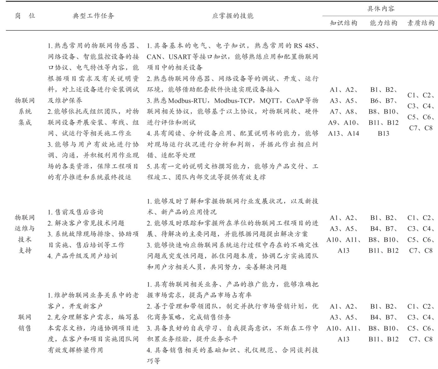 摘要:中职学校作为技能型人才培养的重要力量,在培养物联网项目实施、运维、售后等应用型人才方面具有较强的基础和优势。文中结合新疆伊犁区域产业升级对物联网应用型人才的需求,分析面向产业的中职物联网应用型人才的培养目标中所涉及的知识、能力和素质目标,以及相关目标与不同物联网应用专业岗位的融合情况等内容。同时,以中职物联网应用技术专业学生的职业能力成长过程为线索,以物联网课程之间的衔接需求为基础,讨论了该专业课程体系构建的依据和方法,为中职建设物联网应用技术专业提供了有效参考。