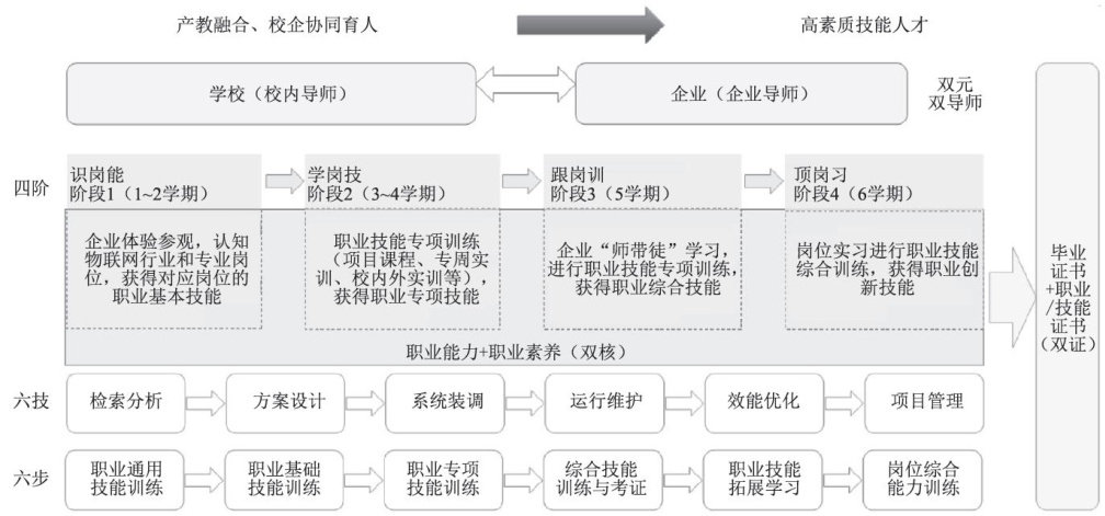 摘要:为了满足新质生产力发展对高素质物联网技术技能人才的需求,解决物联网应用技术专业人才培养与岗位需求脱节、实践能力薄弱的问题,提出了“四阶四双、六技六步”产教融合人才培养模式,通过产业调研与岗位能力分析,构建了以“平台 + 模块”为架构的课程体系。该体系以“岗课赛证训创”综合育人为核心,将新技术动态融入教学,旨在培养掌握物联网专业知识,具备物联网设备安装配置与调试、系统运行维护与管理、软硬件应用开发等核心能力,并兼具数字素养、创新思维与工匠精神的高素质技能人才,为职业教育物联网应用技术专业的数字化转型与内涵建设提供可资借鉴的实践路径。